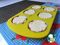 Когда шоколадный слой застынет, выкладываем в каждую ячейку по 1/2 ч. л. конфитюра и по 1 ч. л. чизкейковой начинки. |