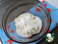 Делим тесто на две равные части, три ст. ложки от одной из частей смешиваем с малиновым конфитюром D’arbo, перед этим процеженным сквозь сито. |