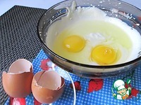 Добавляем йогурт, крахмал и яйца, смешиваем миксером на минимальной скорости до гладкой консистенции. |