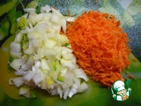 Лук нарезаем кубиками, морковь натираем на крупной терке. Делаем зажарку. |