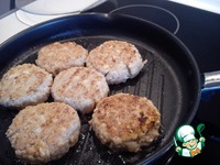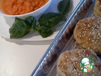 Котлеты выложить на противень, можно смазать взбитым яичным белком, посыпать семенами кунжута, ставим в духовку примерно на 10 минут. |