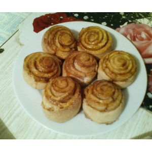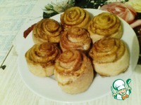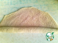 Раскатываем тесто в пласт и обильно посыпаем корицей с сахаром. Заворачиваем рулетом. |