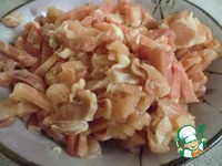 Курицу нарезать на мелкие кусочки и обжарить на сковороде. |