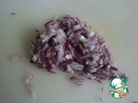 Лук также нарезать на мелкие кусочки. |