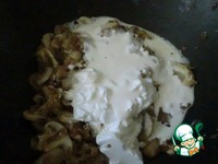 Добавить грибы, жарить до размягчения, добивить муку, бульон, сметану, курицу. Довести до кипения, периодически помешивая, варить в течение 5-10 минут или до загустения соуса... |