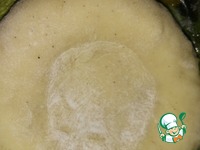 В углубление выкладываем столовую ложку пудинга, сверху добавляем изюм или кусочки фруктов. |