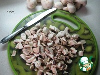 Тщательно моем и чистим грибы. Нарезаем небольшими кусочками. Всё зависит от того, как Вы любите чувствовать грибы в блюде - можно порезать и крупными пластинками. |