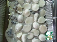 Выложить две ложки соуса с грибами. |