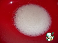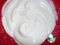 Постепенно добавляя сахар взбить в крепкую пену. |