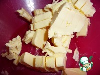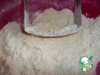 В муку добавить разрыхлитель теста, просеить. Смешать с маслом. Хорошо порубить. Я смешиваю с помощью специального резака. |
