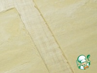 3. Тесто раскатать в пласт толщиной 0.5 см. Я делала 1 пирог 20 см на 10 см, из остального теста слойки. |