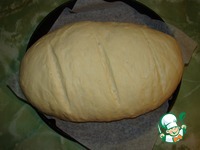 Сформировать 1 или 2 батона. Если 1, то его вес будет 920 - 930 г. Форму (противень) застелить пергаментной бумагой, уложить на нее батон швом вниз. |