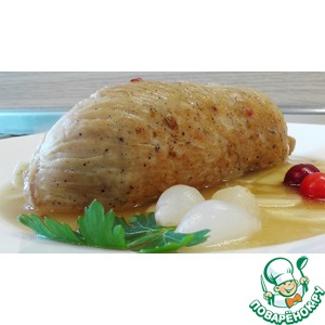 Описание: Вкусное блюдо из филе индейки фаршированное яблоками, сельдереем и хлебом со специями под фруктово-ягодным соусом