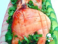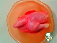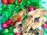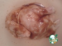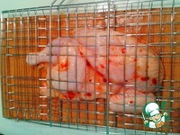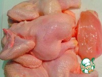 Начнем с того, что с вечера замаринуем птицу. У меня килограммовые цыплята и я разрезала их пополам, приготовила филе и посолила. Если у вас птица мелкая, то разрежьте ее по хребту и разверните. |