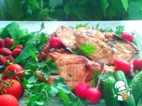 Описание: Способов жарки цыплят под гнетом существует много. В Грузии это устройство "тапак" (сковорода с толстым дном и тяжелая крышка, которая по диаметру меньше сковородки), во Франции цыплят прижимали колесом, а в Ирланлии чугунным утюгом... Каждая страна считает, что это именно у них так начали готовить цыплят. Отличие приготовления только в ингредиентах, в которых мариновывали птицу. Французы, например, говорят, что еще во времена мушкетеров готовили молодых петушков именно так! А мы не будем спорить и сегодня приготовим цыплят с разными маринадами : с грузинским, французским и поваренковским (! ) а, т. к. на пикник с нами поедут дети, то для такого случая я придумала ( детский ) соус. А самое главное - готовить мы будем на мангале!