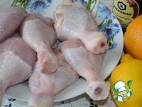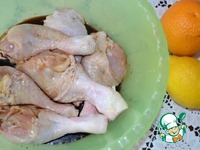 Для данного блюда я выбрала куриные голени. Подойдут любые части, те которые вы больше любите. Маринад для них приготовим из лимонного и апельсинового сока, и соевого соуса. |