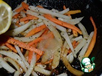 Добавляем сахар и лимонный сок. Обжариваем до мягкости. |