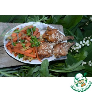 Овощи подаем с куриными голенями, посыпав семенами кунжута и зеленью. Приятного аппетита! |