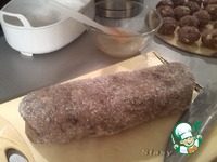 Из теста сформировать брусочек, обернуть плёнкой и убрать в холодильник где-то на 2 часа. |