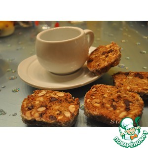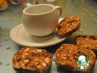 Нарезать печеньки толщиной 0,8-1 см, выложить на противень. Выпекать 15-20 минут при 180˚С, перевернуть и печь ещё 10 минут при 160˚С. |