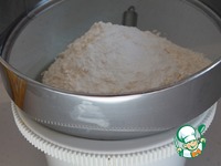 Добавляем просеянную муку с разрыхлителем. Не игнорируйте просеивание муки, те кто пекут знают, что пирог так намного пышнее. |
