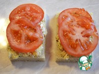 Порежьте хлеб, намажьте получившейся массой, выложите помидор и закройте бутерброд другим кусочком хлеба. Бутерброд получается мягкий с нежной начинкой. |