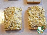 Второй вариант подачи, намажьте массу на хлеб, закройте вторым кусочком. |