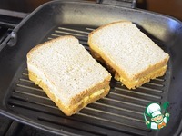 Обжарьте на сковороде гриль с двух сторон. Бутерброд получается с супер хрустящей корочкой и нежной начинкой внутри. |