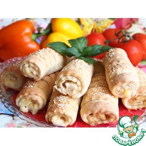 Описание: Трубочки с курицей и плавленым сыром можно подавать как к чаю, так и к первым блюдам вместо хлеба, брать с собой в дорогу или на пикник. Думаю, близкие оценят эти вкуснейшие полосатые трубочки.