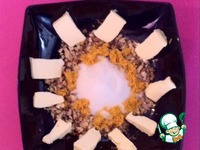 Сверху закрываем оставшимся тестом. Выпекаем при 200 градусах 20-25 минут. Степень готовности, как обычно, проверяем деревянной лучинкой. |