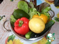 Продукты, которые нам нужны для приготовления. Тщательно моем овощи и листья салата, даем воде стечь. |