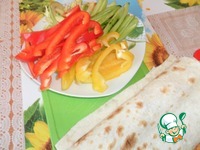 Авокадо, перец, огурец режем на тонкие полоски и сбрызнем лимонным соком. Формируем рулеты. |