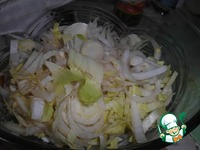 3. Нарежем салатный цикорий полукольцами, удалив нижнюю часть (кочерыжку). |
