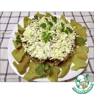 Печень и сало прокрутить на мясорубке (можно добавить в смесь 1 луковицу, которую тоже прокрутить на мясорубке), добавить соль, перец, куриные сырые яйца, манку, крахмал и всё тщательно перемешать. На раскалённую сковороду, в которой согрелось растительное масло или вытопленный свиной жир, выливаем ¼ получившейся смеси, примерно в 1 см (если сделать блинчик тоньше или толще этого 1 см - будет проблематично его перевернуть на другую сторону!) обжариваем с обеих сторон. Снимаем блинчик и заливаем ещё одну порцию. У меня получилось 4 блинчика. |