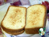 Ломтики хлеба обжарить на сухой сковороде или гриле с двух сторон (можно конечно добавить и немного масла, но мне больше нравится так). |