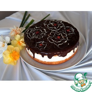 Застывший торт залить шоколадной глазурью. Впрочем, можно просто посыпать его сахарной пудрой. |