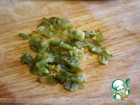 Халапеньо мелко порезать и добавить в сковороду. |