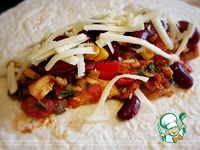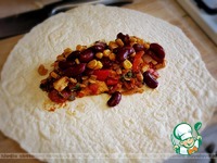 Положить на тортилью 1/4 начинки. |