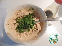 Приготовить начинку: смешать творожный сыр и натертый твердый сыр, добавить соевый соус и рубленную мяту. |