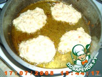 На сковородке разогреть топленое масло, испечь оладьи, ложкой выкладывая тесто. |
