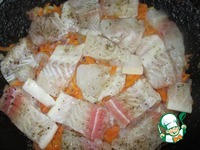 Филе пангасиуса перчим, солим, добавляем рыбные специи. Перемешиваем оставляем на время мариноваться. |