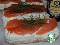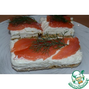 Перед подачей украсить кусочками семги и зеленью. Нарезать порционно. Угощайтесь! |