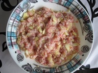 Готовим заправку: томатную пасту заливаем водой, добавляем майонез, подсаливаем и размешиваем |