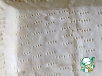 В смазанную маслом и застеленную пергаментом форму выложить слоённое тесто, наколоть его и выпекать 10 минут. |