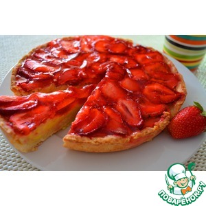 Клубнику ра3ре3ать пополам, либо дольками (это 3ависит от того, сколько свободного места в торте). Ягоды выложить на торт и покрыть желе. |