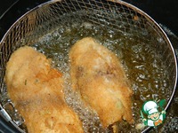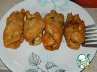 Обваливаем каждый рыбный рулет в муке, затем во взбитом с небольшим количеством воды яйце, затем в сухарях. |
