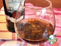 Оставшийся от изюма алкоголь, вливаем в тесто. Тесто еще раз перемешиваем и заливаем им фрукты. |