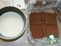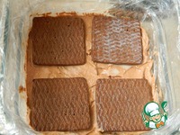 Затем слой крема и опять печенье в молоке. И так выкладываем весь крем и печенье. Последний слой должен быть печенье. Затем накрываем и убираем в холод на несколько часов для пропитки. |