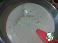 Осторожно смешать лопаткой или ложкой с яичной смесью до однородности. |