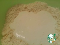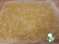 Каждую часть раскатать (толщиной примерно 3 мм) и равномерно засыпать штрейзелем (начинкой). |